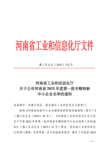 • 建材院獲批“河南省專(zhuān)精特新中小企業(yè)”認(rèn)定 2025-07-03